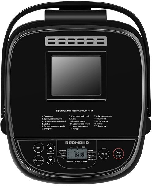 Features: crust color selection, temperature maintenance, baking weight adjustment, removable lid, timer, accelerated baking, Display, cooking time adjustment, temperature adjustment, programs: gluten-free