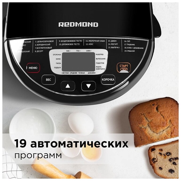 Features: choice of crust color, temperature maintenance, baking weight adjustment, timer, accelerated baking, programs: jam, dough kneading, cake, wheat bread, rye bread, sweet pastries, French baguette, ma�