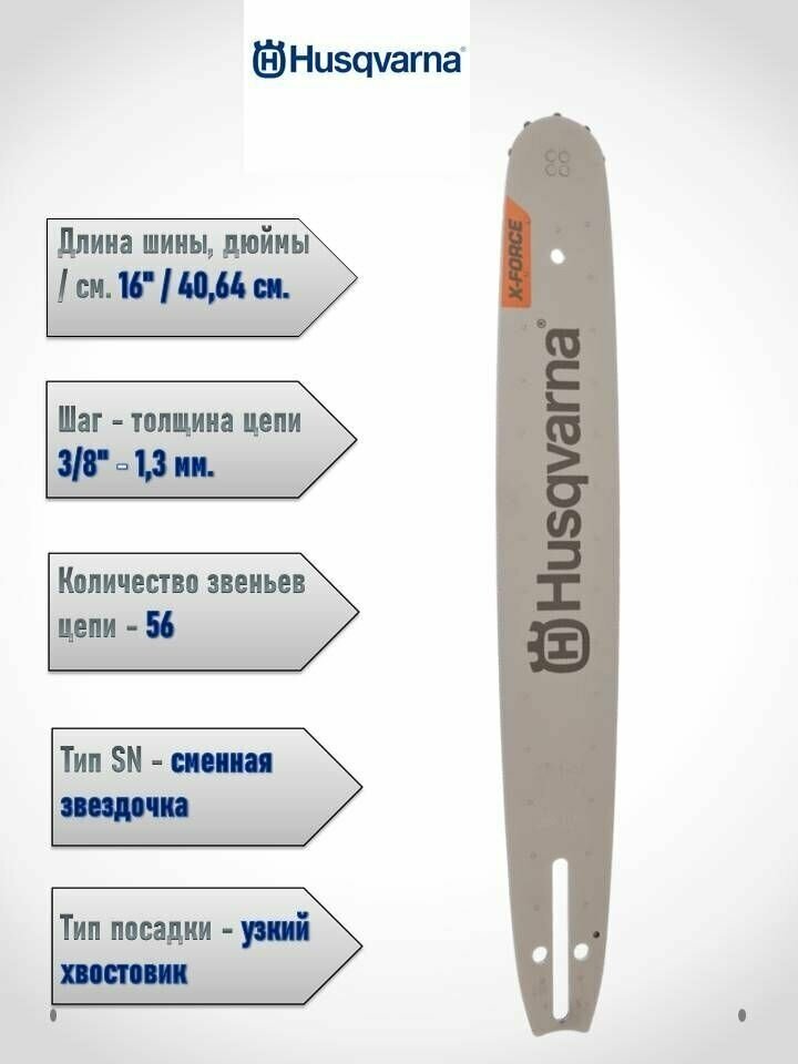 56 links, bar length 16, chain pitch 3/8, groove width 1.3 mm