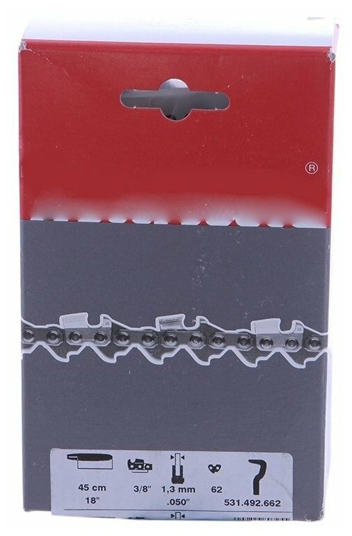 62 links, chain pitch 3/8", groove width 1.3 mm