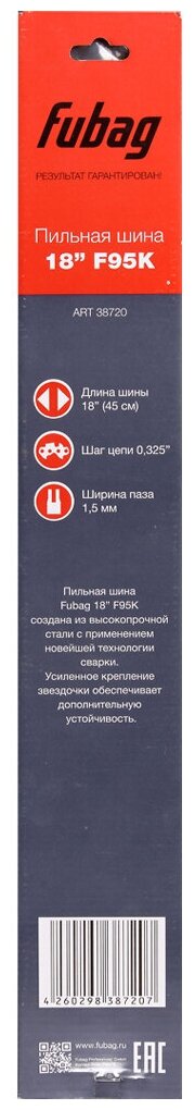 Bar length 18", chain pitch 0.325", groove width 1.5 mm