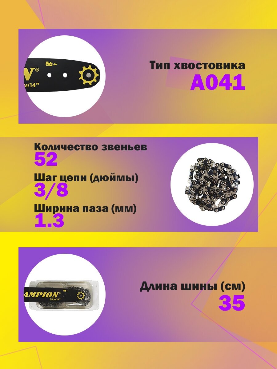 CHAMPION bar+chain set 952929 14 3/8 1.3 mm 52 links