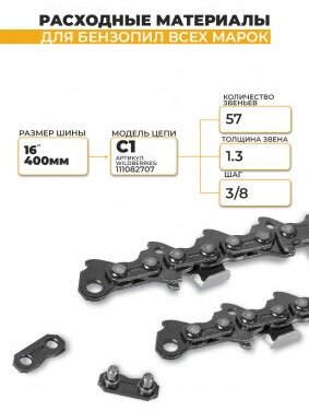 57 links, bar length 16, chain pitch 0.325, 3/8, groove width 1.3 mm
