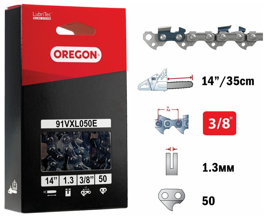 Chain OREGON 91VXL050ER 3/8 1.3 mm 50 links.