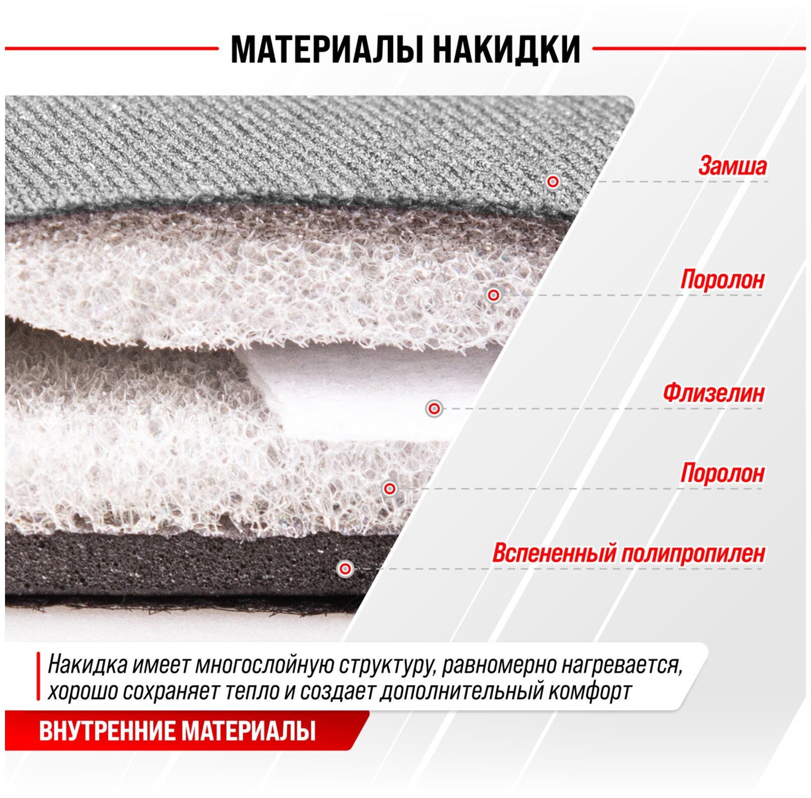 Type: cape, purpose: on the seat, on the back, car model: any, material: polyester, functions: heating, number of seats: 1, seat location: front, fastening: hooks, rubber bands