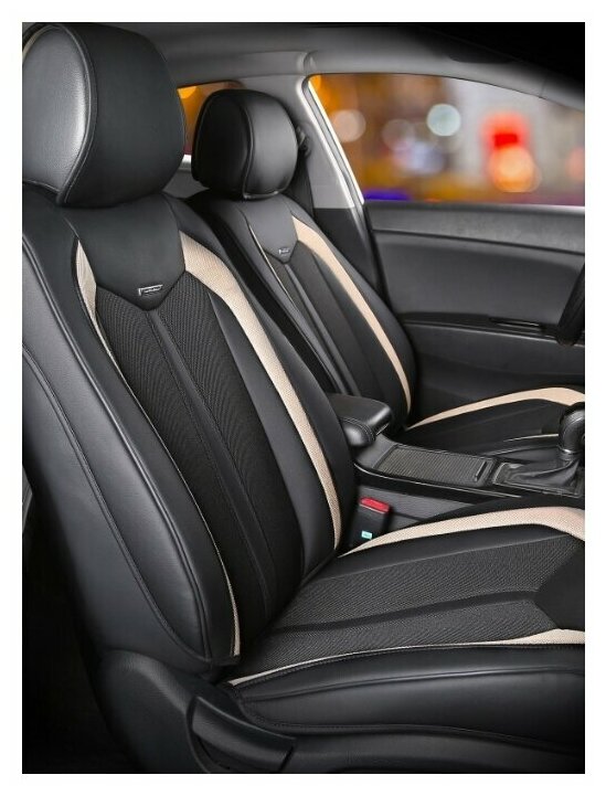 Type: cape, purpose: on the headrest, on the seat, on the back, material: eco-leather, functions: protection against dirt, number of seats: 5, seat location: rear, front, fastening: fasteners, hooks, Velcro, zipper