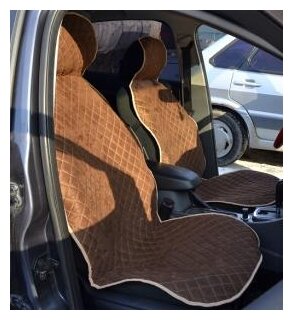 Seat cover Alcantara front seats, STANDARD Brown with beige thread