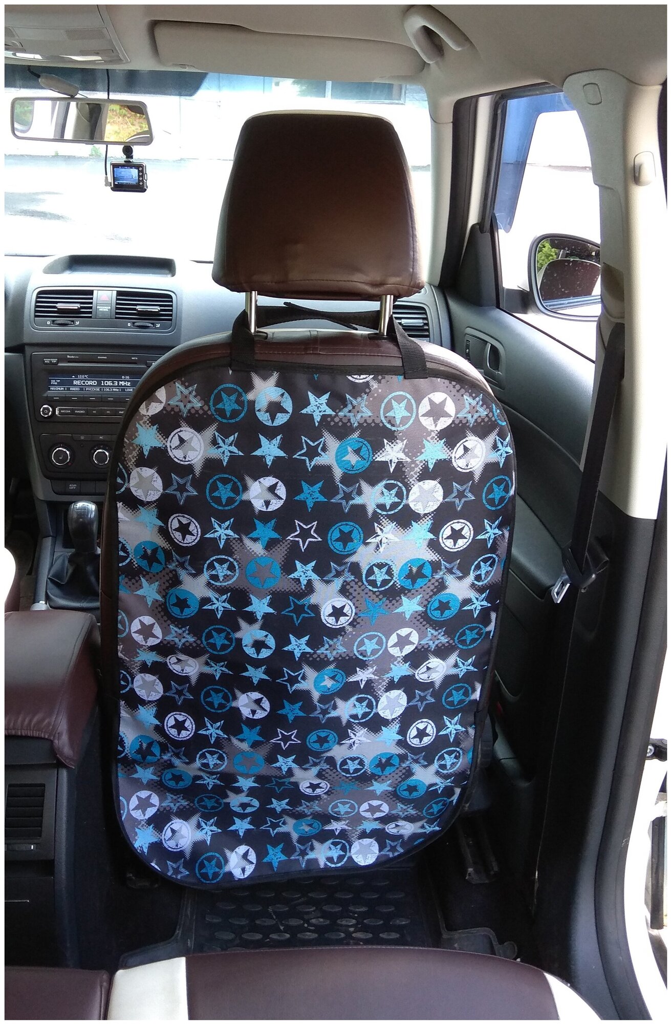 Fastening at the headrest - Velcro, from the bottom of the seat - elastic