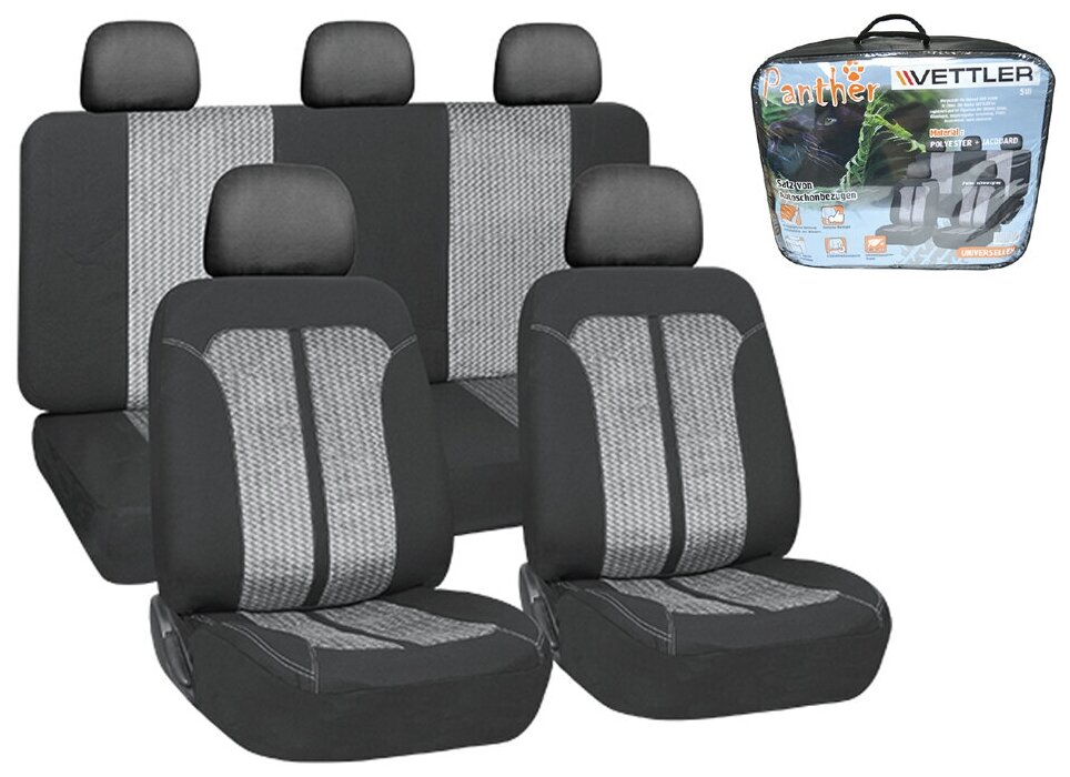 Covers automobile univers. for passenger cars Vettler Panther polyester+jacquard, black/grey 9 pr.