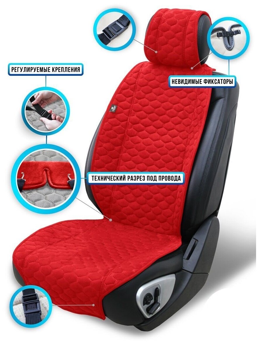 Type: cape, purpose: on the headrest, on the seat, on the back, material: Alcantara, functions: protection against dirt, number of seats: 1, seat location: front, fastening: fasteners, hooks, rubber bands