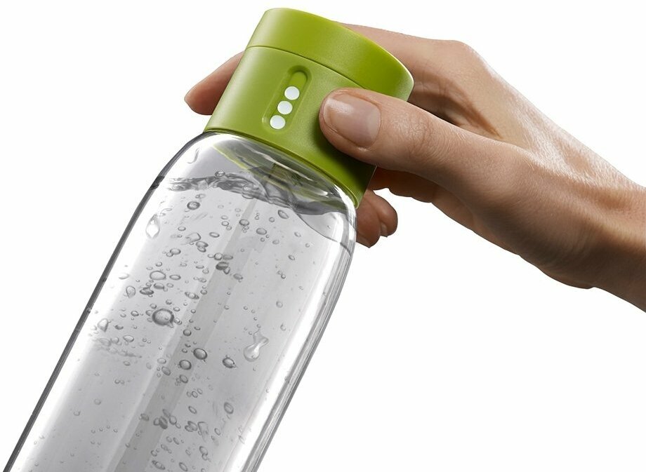 A counter fixing each filling of the container; four bottles of water drunk are equal to the daily norm needed by a person; maximum use temperature: 60 °C; minimum use temperature: 0 °C