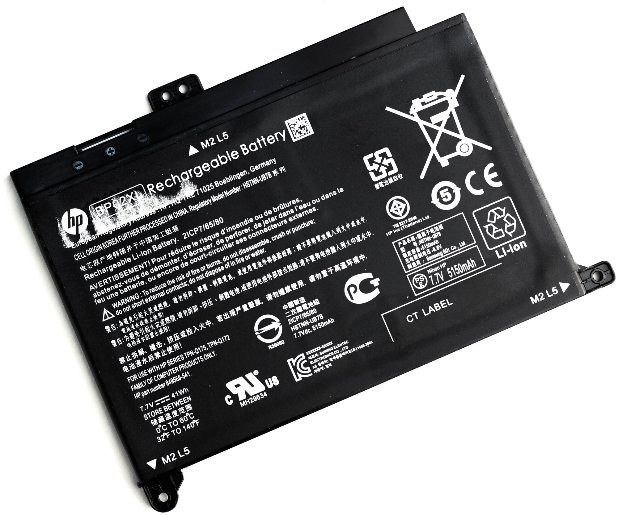 Battery for HP 15-AU 15-AW ORG 7.7V 5150mAh p/n: BP02XL HSTNN-LB7H HSTNN-UB7B