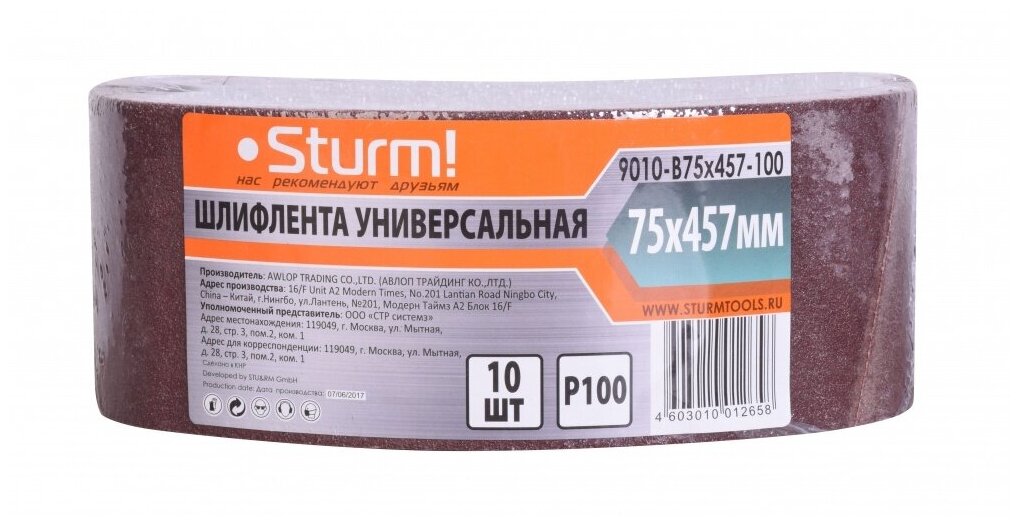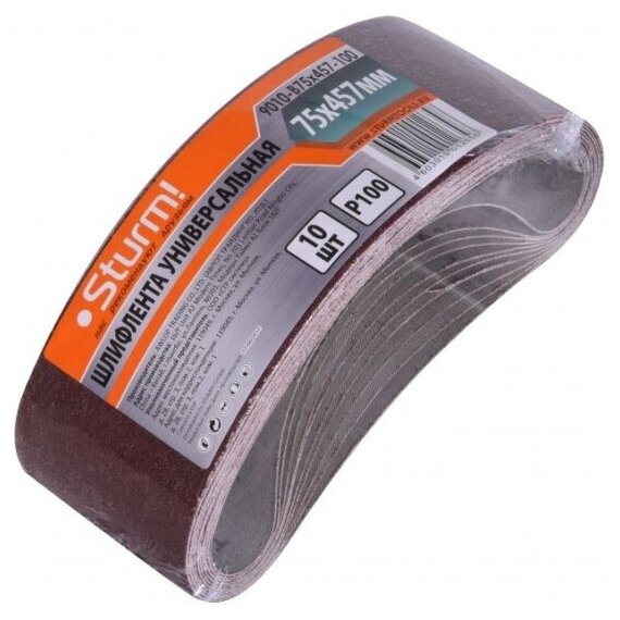Sanding belt Sturm! 9010-B75x457-100, size 75x457, grit 100, pack of 10