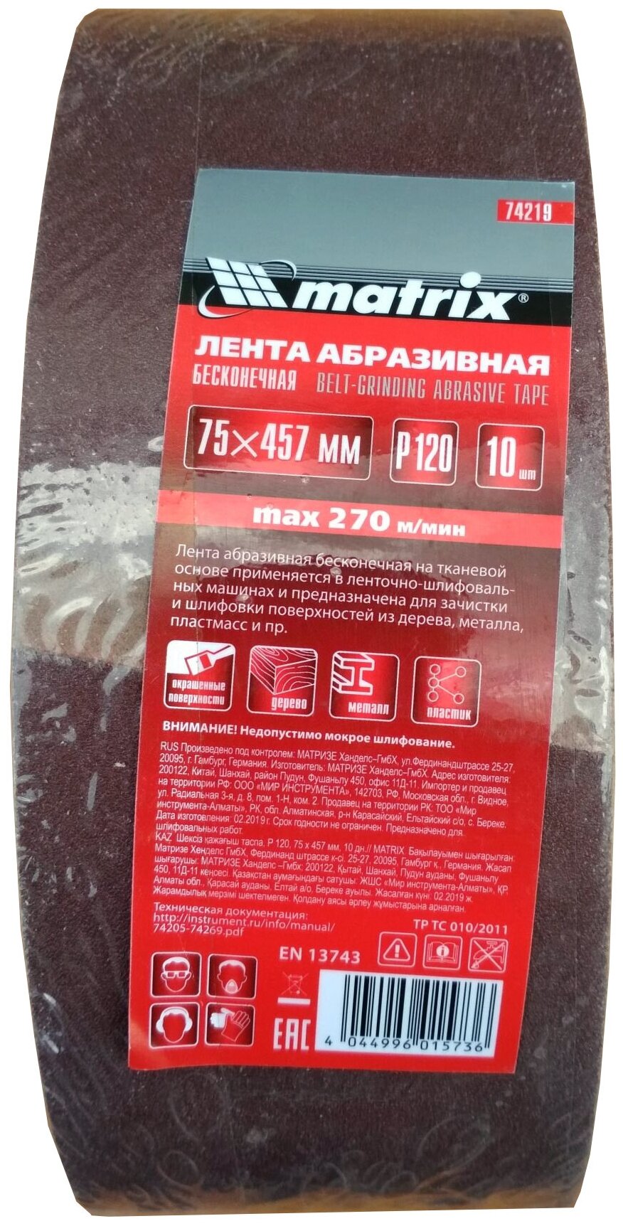 Tape size: 75x457, quantity per pack: 10 pcs, grit P: 120