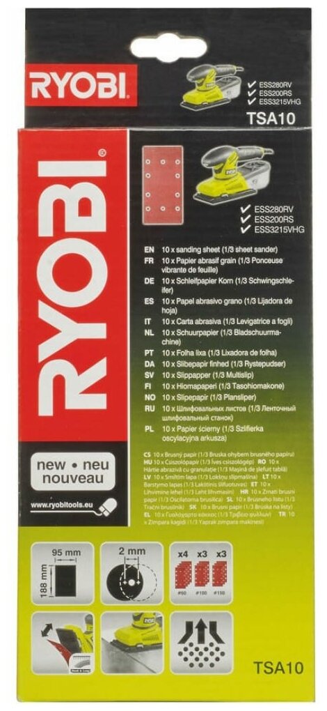 Type: sheet, purpose: for grinders, length: 188 mm, width: 95 mm, grit P: 100, 150, 60