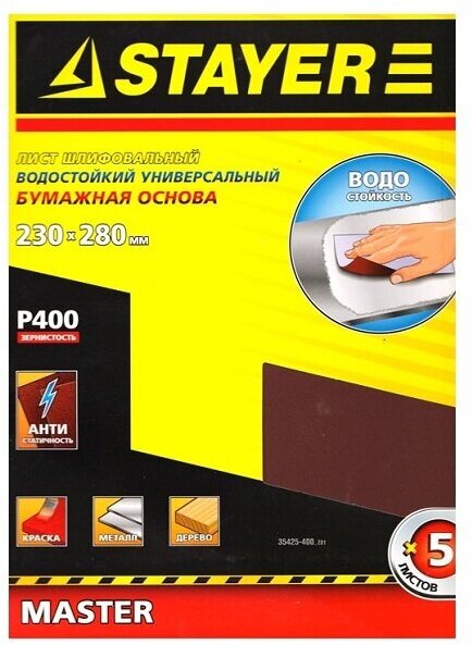Type: sheet, purpose: universal, length: 280 mm, width: 230 mm, grit P: P400, water resistant
