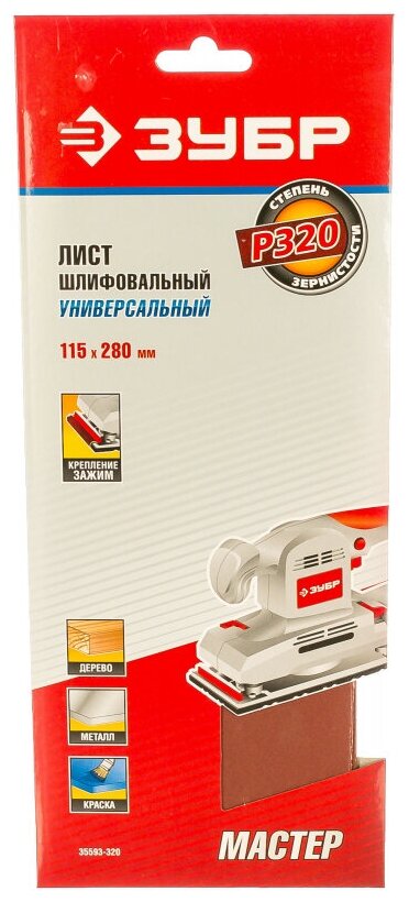 ZUBR R320, 115x280mm, 5 pcs., sanding sheet without holes, for PSHM on clamps 35593-320