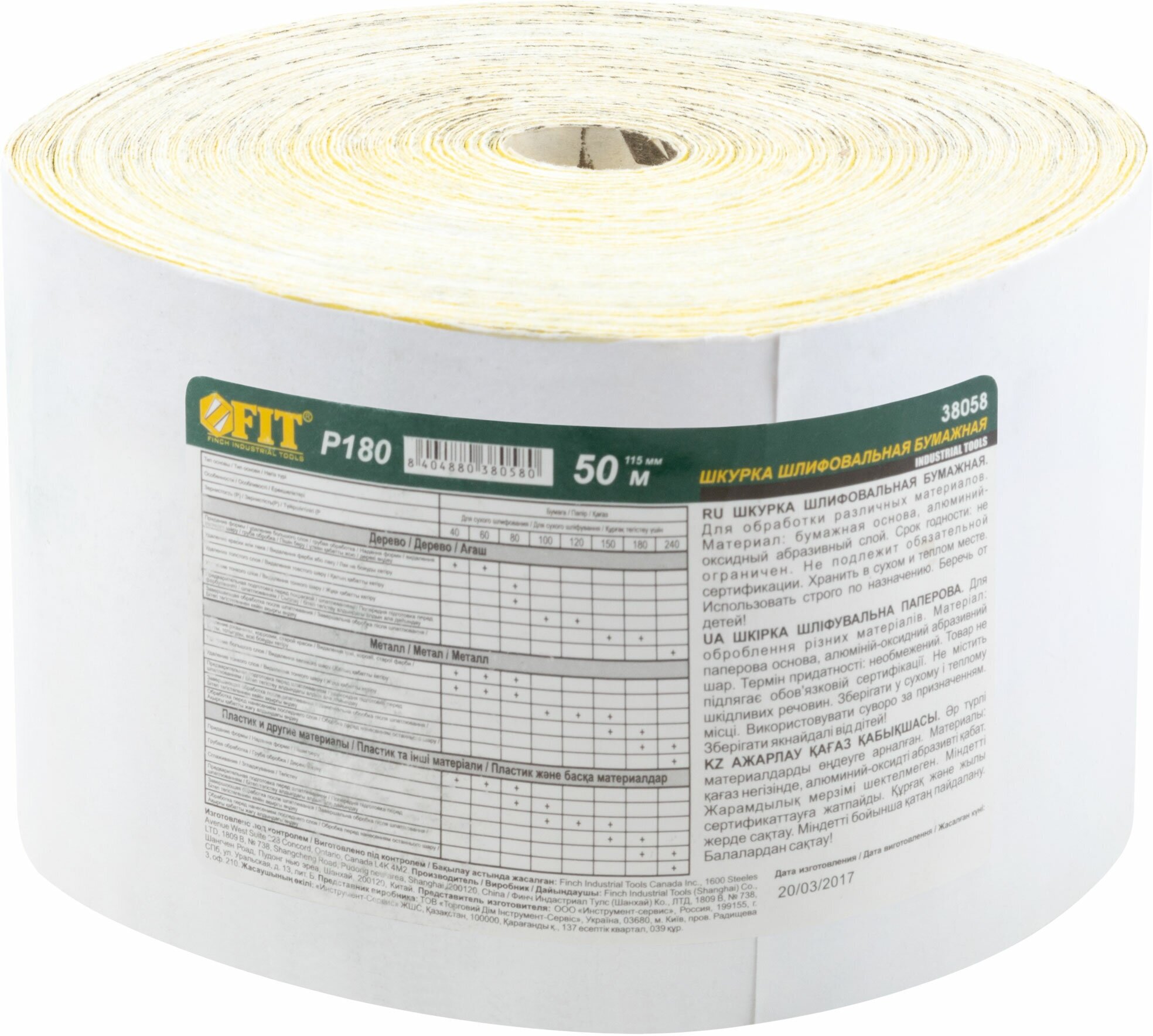 Type: roll, purpose: universal, length: 50000 mm, width: 115 mm, grit P: 180