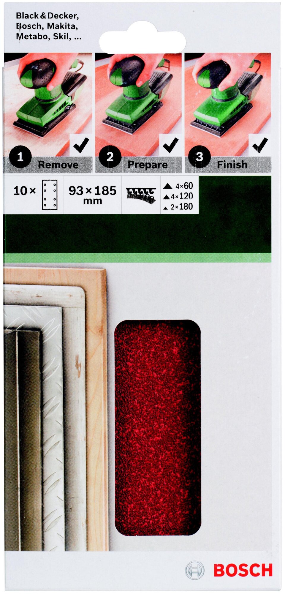 BOSCH Sanding sheet set 93x185mm Р60/120/180 10 pcs 2609256A86