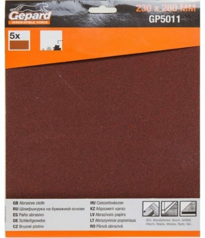 Sanding sheet 230x280mm P240 paper base 5 pieces. GEPARD GP5011-240 abrasive paper, abrasive abrasive sheet, abrasive paper