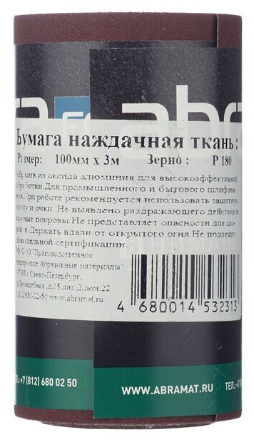 Type: roll, purpose: for plastic, length: 3000 mm, width: 100 mm, grit P: 180, base: fabric