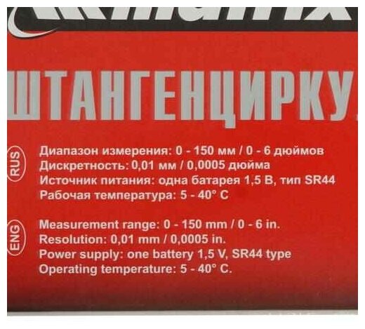 Instrument type: caliper, type: digital, maximum measurement value: 150 mm, scale division: 0.01 mm