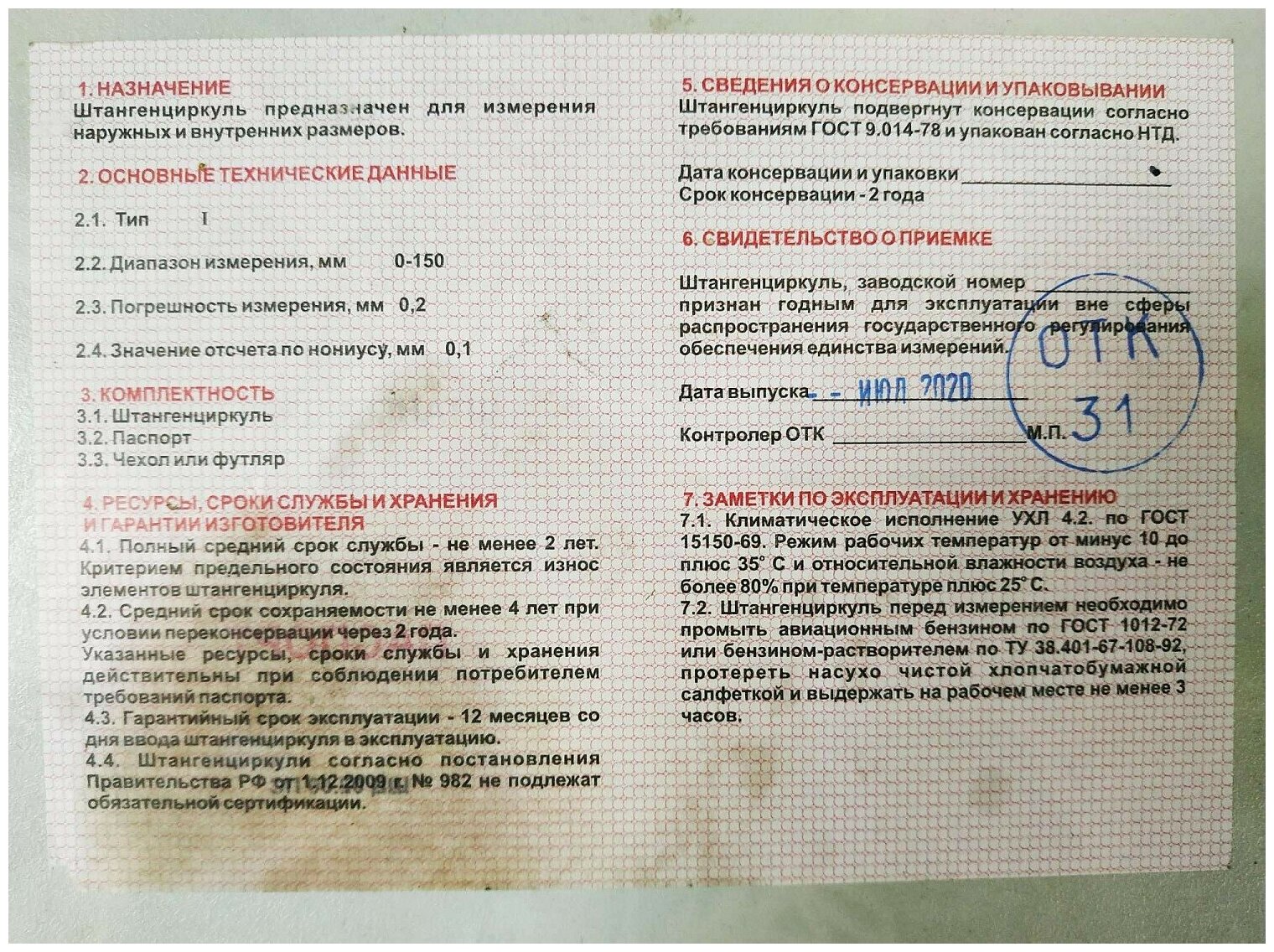 Instrument type: vernier caliper, type: vernier, length: 150 mm, maximum measurement value: 150 mm, graduation: 0.10 mm
