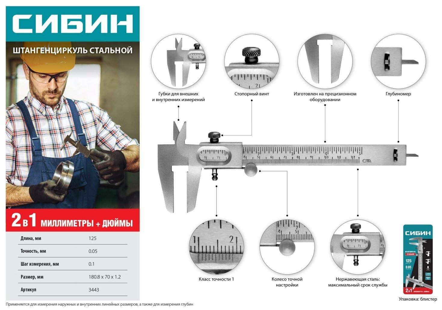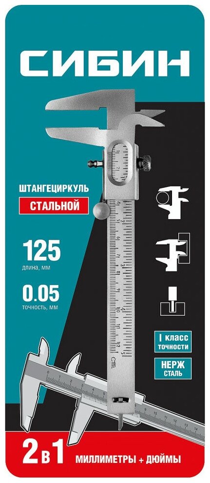 Instrument type: vernier caliper, type: vernier, maximum measurement value: 125 mm, scale division: 0.05 mm