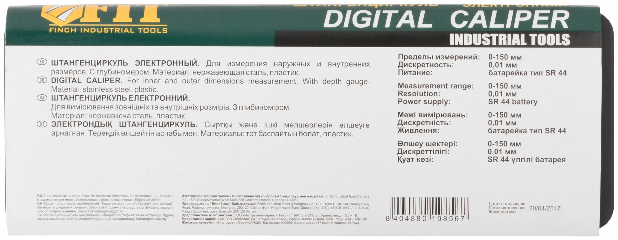 Instrument type: vernier caliper, type: vernier, length: 240 mm, maximum measurement value: 150 mm, graduation: 0.02 mm