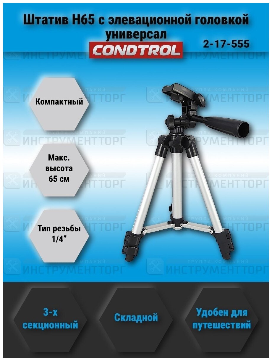 Type: stand, purpose: for a rangefinder, for an indicator, for a laser level, for a micrometer, for a level, for lighting devices, for a reflector, universal, length: 65 mm, tripod features: folding design