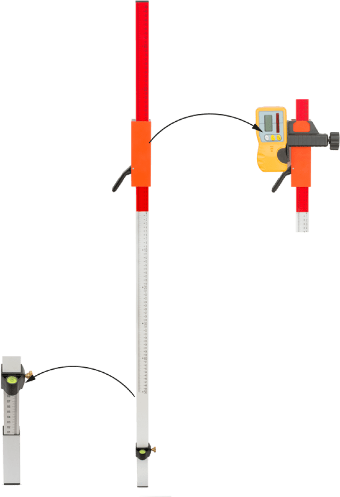 Tripods, milestones, rails for levels and laser levels