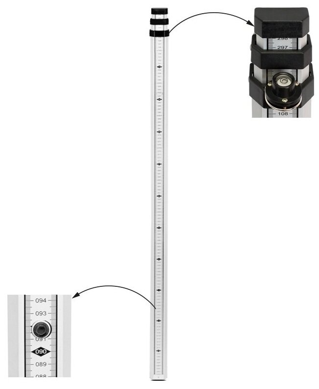 Type: rail, purpose: universal, length: 4000 mm, tripod features: telescopic, pole/rail features: telescopic, scale in millimeters, equipment: level, case