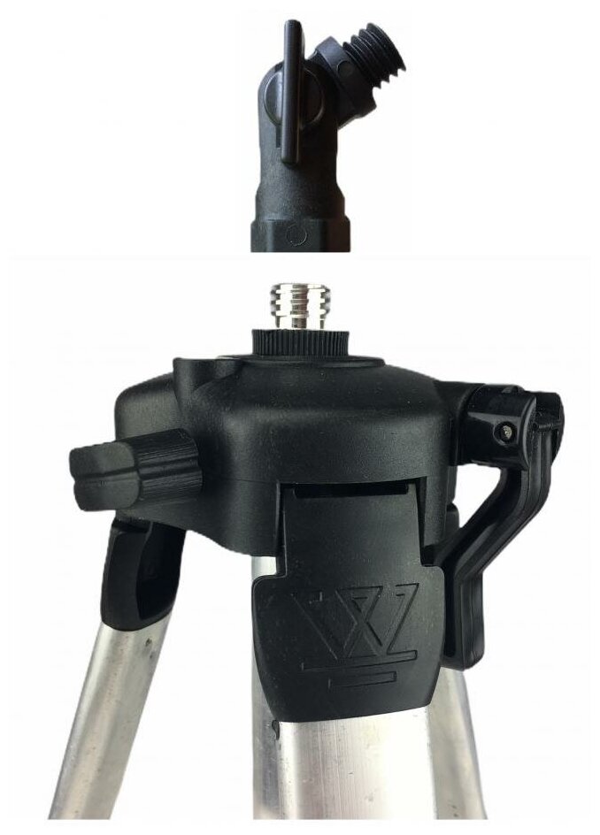 Type: tripod, purpose: for laser level, length: 1000 mm, tripod features: clip-on, foldable, telescopic, device thread: 5/8", machine screw thread: 5/8", package contents: case