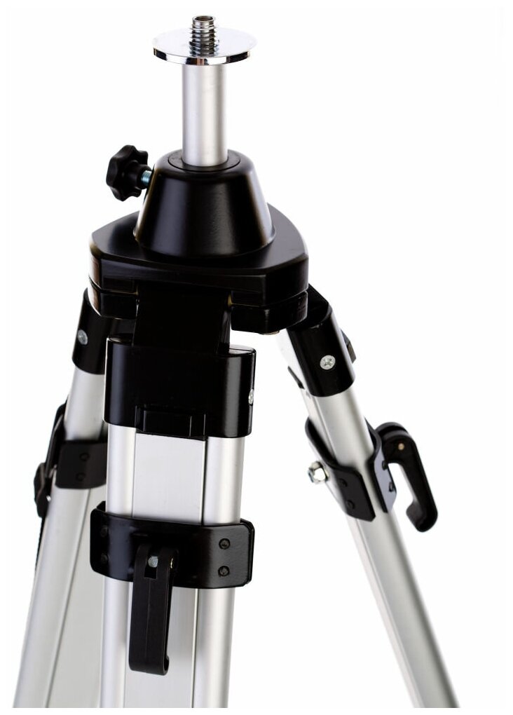 Type: tripod, purpose: for laser level, for leveling, length: 1850 mm, tripod features: clip-on, folding design, telescopic, elevation head, device thread: 5/8"