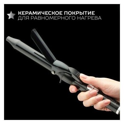 Type: electric hair curler, coating: ceramic, type of curling iron: curling iron, purpose: curling, styling, additional functions: overheating protection, cord protection against twisting, curling iron/styler diameter