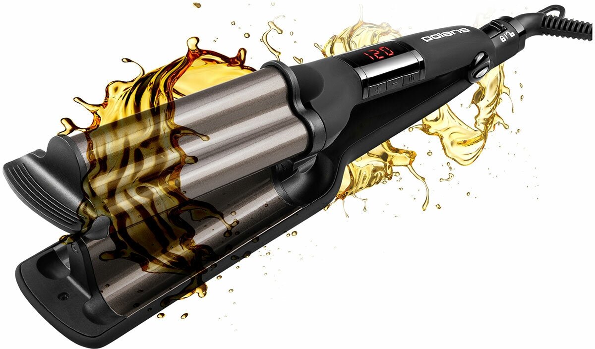Type: tongs, coating: tourmaline, type of tongs: corrugated, purpose: corrugation, styling, additional functions: automatic switch-off, overheating protection, ionization, plate width: 55 mm, maximum temperature