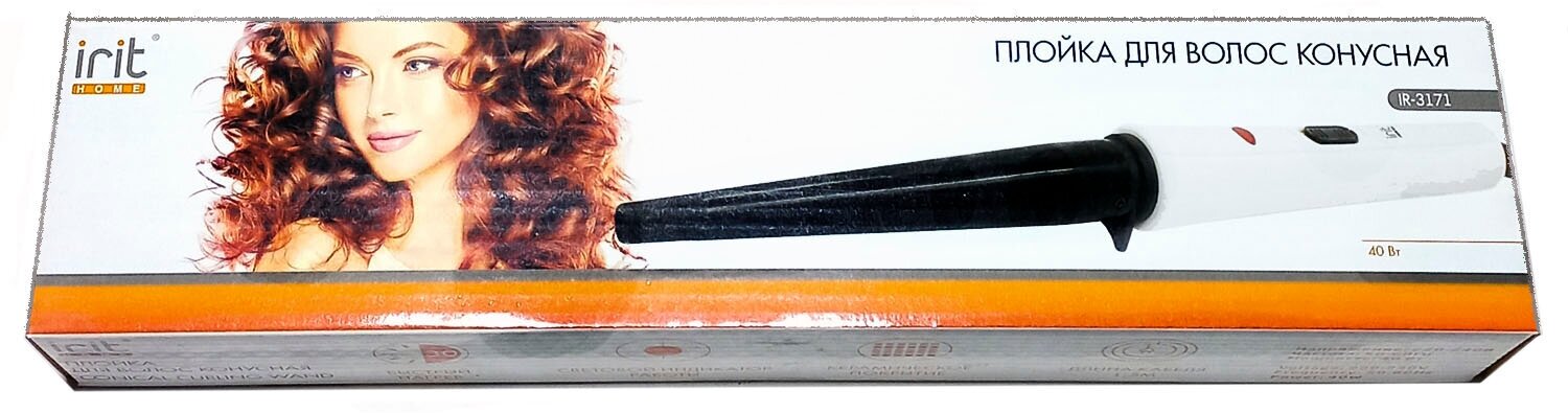 Type: tongs, coating: ceramic, type of tongs: conical, purpose: curling, power: 40 W, features: on indication, hanging loop
