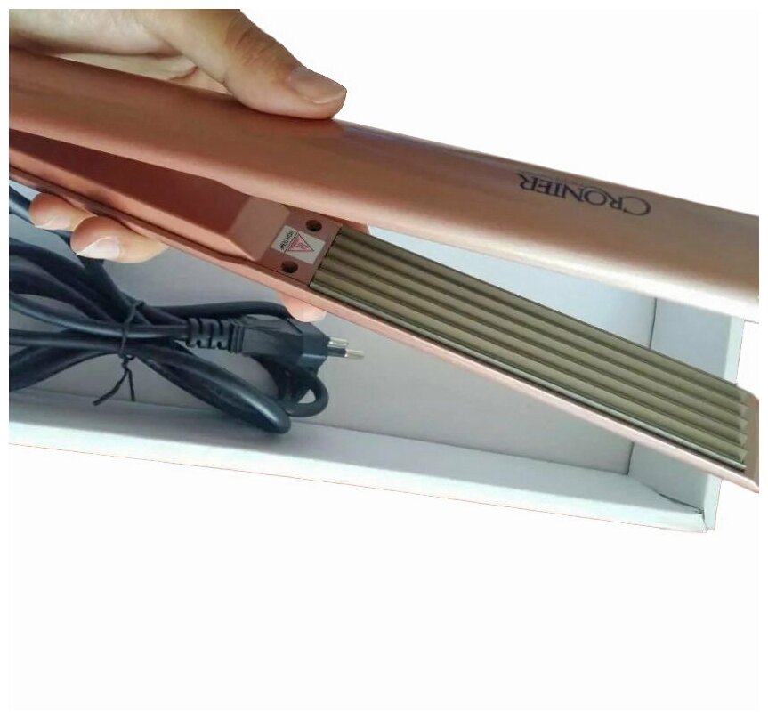 Type: straightener, coating: ceramic, type of tongs: corrugated, purpose: straightening, corrugation, curling, additional functions: automatic shutdown, overheating protection, ionization, maximum temperature