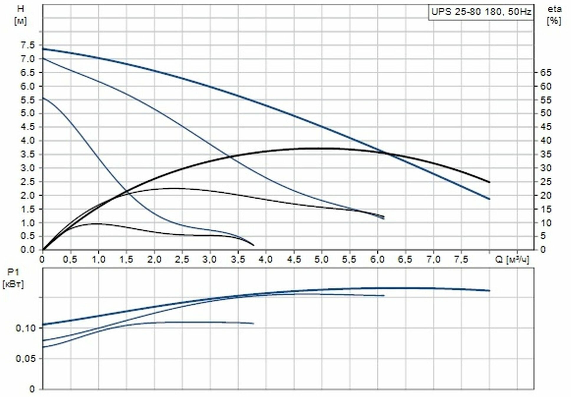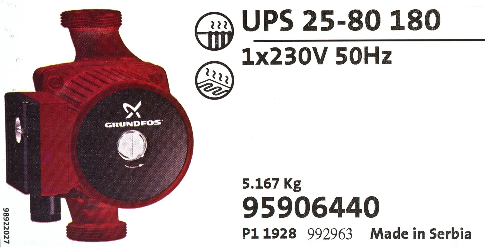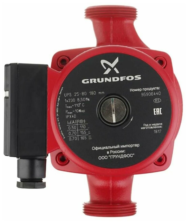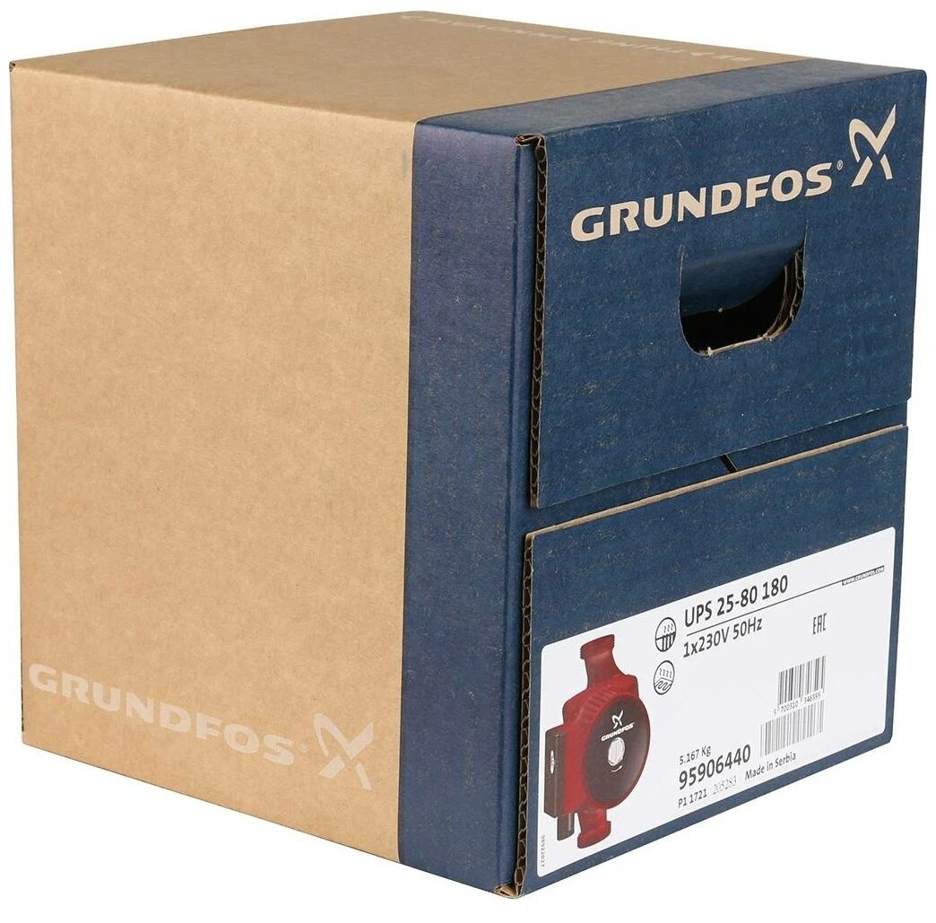 Circulation pump Grundfos UPS 25/80 with nuts - 1 pc., instruction manual - 1 pc.