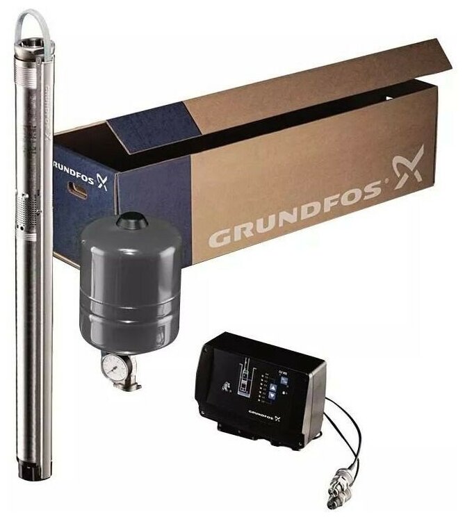 The kit includes: pump, control unit CU301, membrane tank 8 l/7 bar, pressure sensor 0-6 bar, pressure gauge 0-10 bar