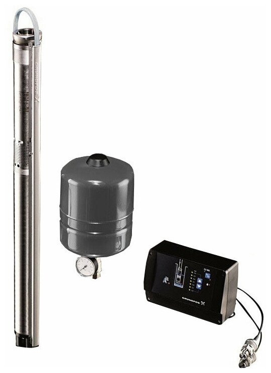 The kit includes: pump, control unit CU301, membrane tank 8 l/7 bar, pressure sensor 0-6 bar, pressure gauge 0-10 bar