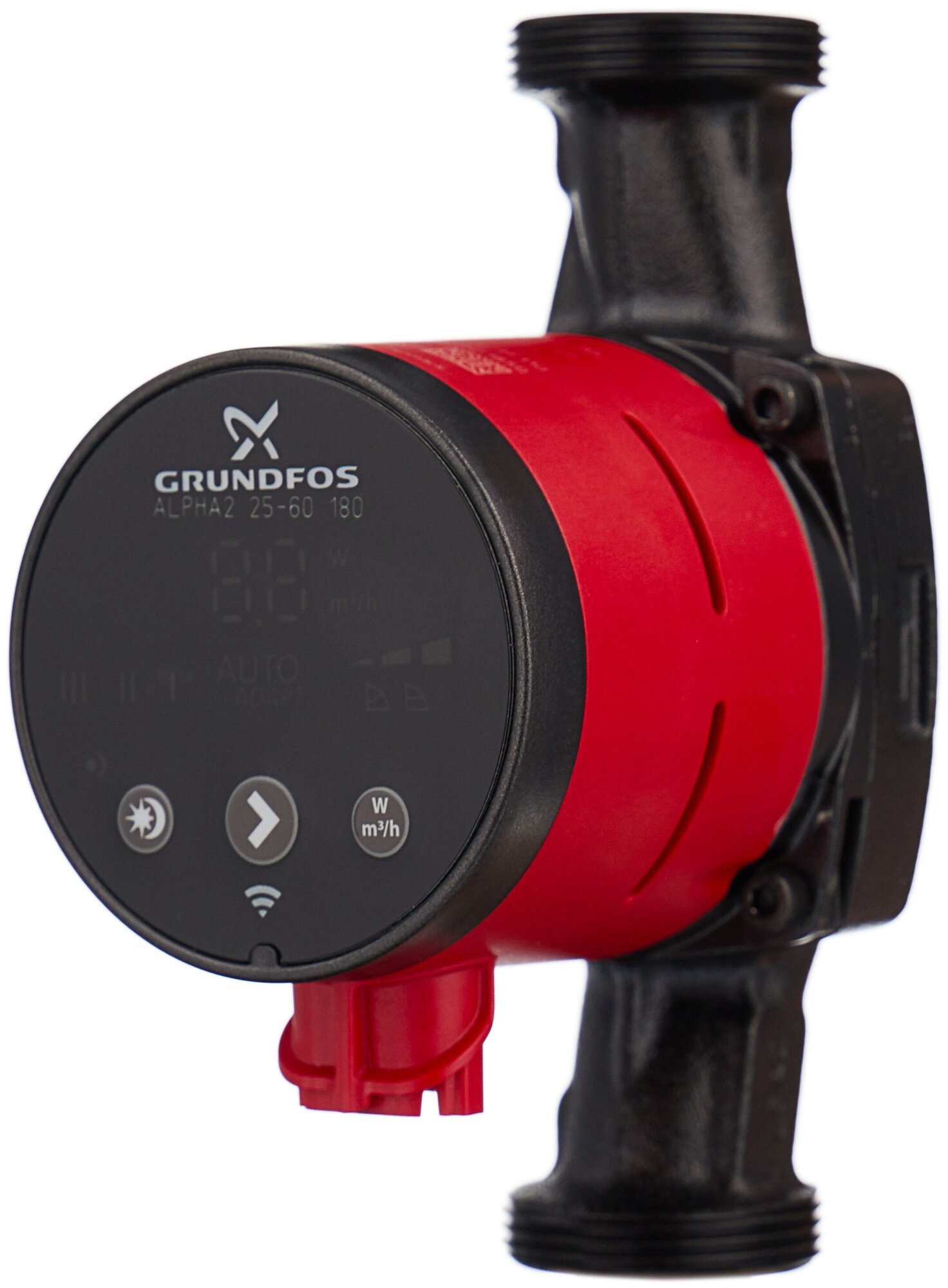 Frontal control panel, night mode function; EAC marking; 10 control modes; function of balancing the heating system via the Grundfos GO Balance mobile application requires an ALPHA Reader communication module; ALPHA Reader MI401 not included