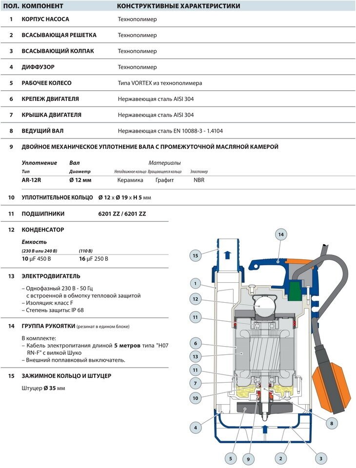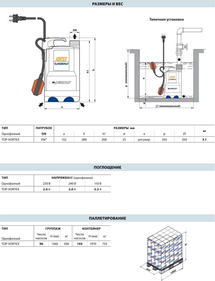 Maximum emptying level of the well 14mm, for a short time up to 3 minutes, the temperature of the pumped liquid is +90°С