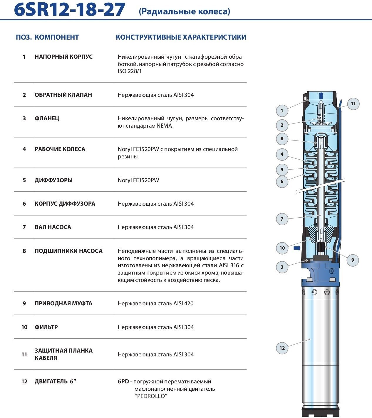 Borehole pump Pedrollo 6SR 12/11 - PD