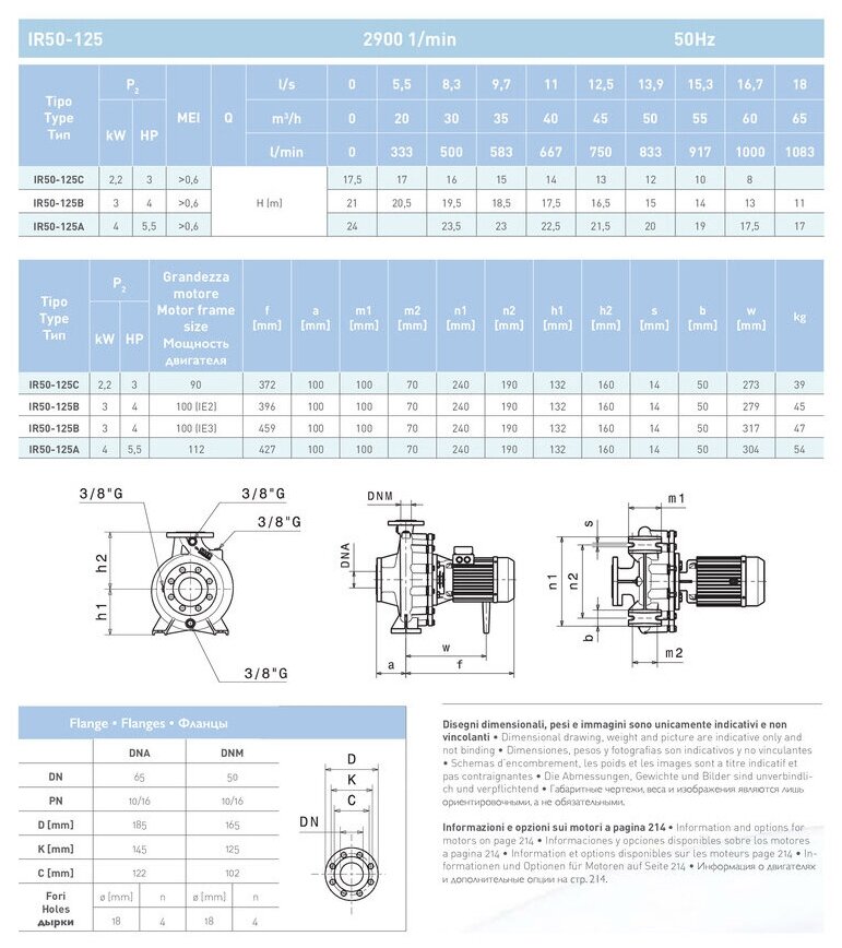 Cantilever-monoblock flanged SAER IR 50-125B, kW 3