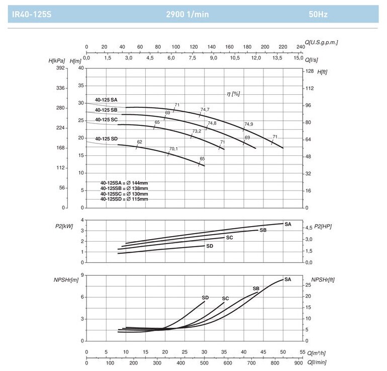 Cantilever-monoblock flanged SAER IR 40-125SD, kW 1.5