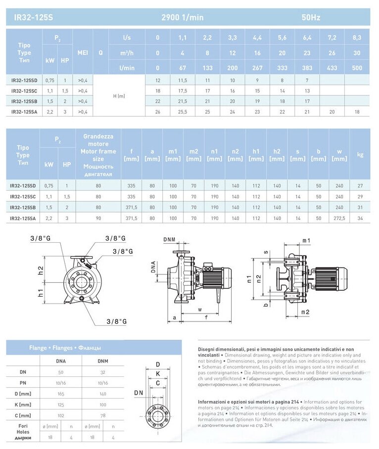 Cantilevered monoblock flanged SAER IR 32-125SC, kW 1.1