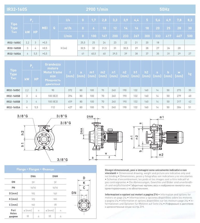 Cantilevered monoblock flanged SAER IR 32-160SC, kW 2.2