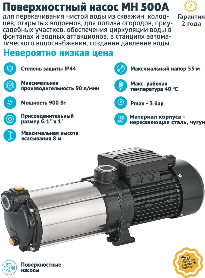 The maximum amount of sand in the water is not more than 100 gr. in cube m; productivity max: 90 l/min; protection class IP44