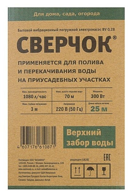 1. Factory packaging - 1 pc 2. Belamos BV-0.28 vibration pump, cable 25 m - 1 pc 3. Instruction - 1 pc